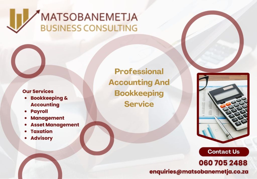 Matsobanemetja Business Consulting (Pty) Ltd offers a wide range of bookkeeping and accounting services, tailored to your business needs at an affordable price.
